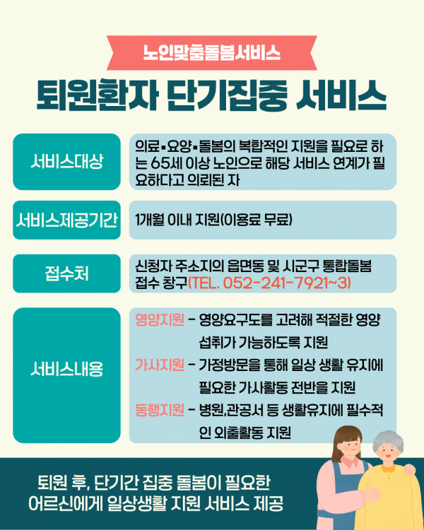 울산북구노인복지관은 퇴원 후 어르신들이 안전하고 편안하게 일상으로 돌아갈 수 있도록