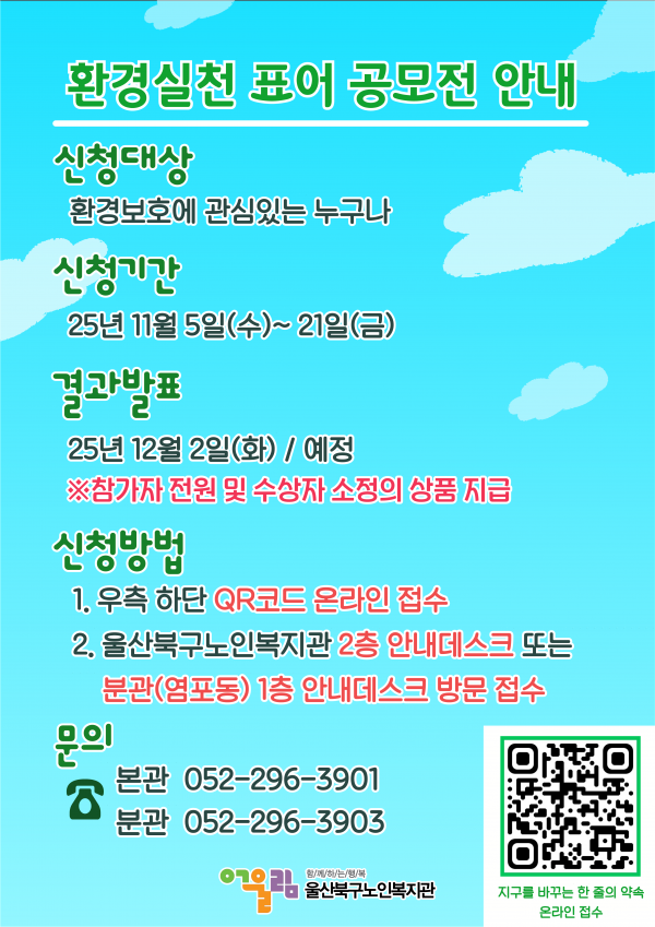 ■ 공모전명: 지구를 바꾸는 한 줄의 약속 – 환경실천 표어 공모전