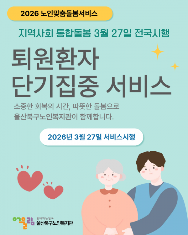 2026년 노인맞춤돌봄서비스 '퇴원환자 단기집중 서비스' 시행